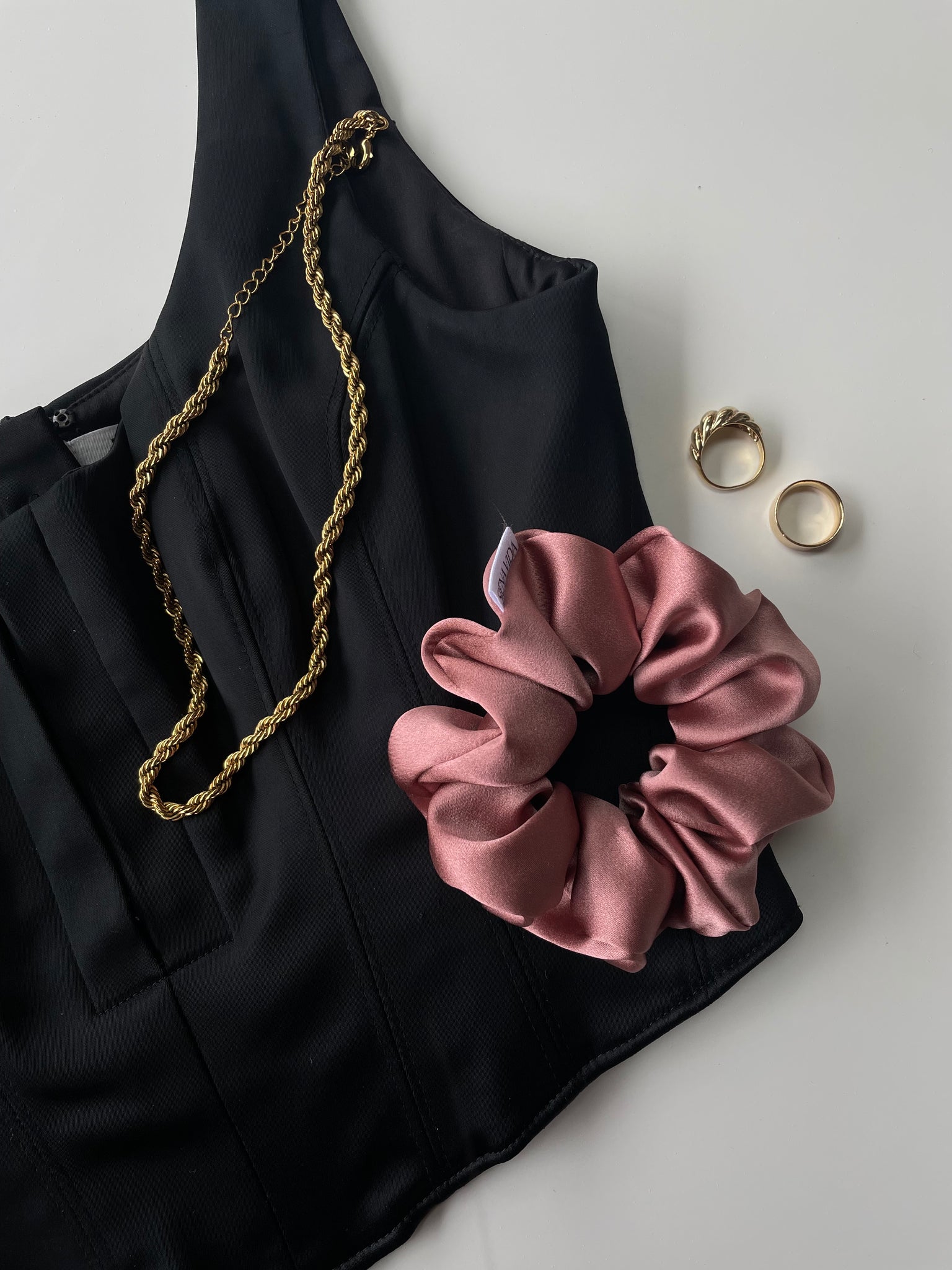 Add a little LUXE to your day with a 100% silk scrunchie. Silk is gentle on the hair and is ultra soft in your top bun or low pony.