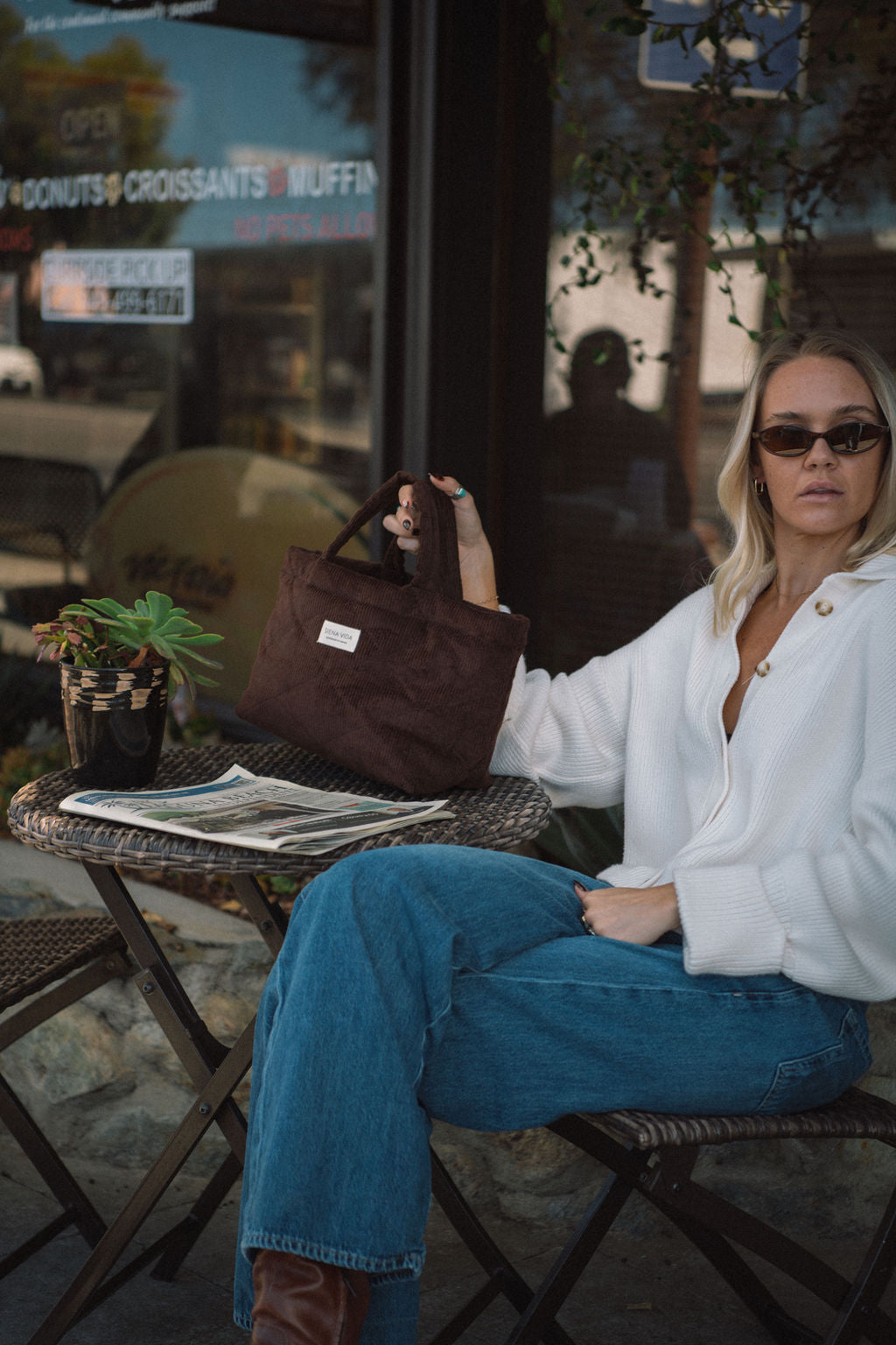 A winter-ready twist on our classic quilted tote. Crafted in Toronto from soft, textured corduroy, this small-sized tote brings a cozy, elevated feel to your everyday carry. Its compact shape makes it perfect for errands, light essentials, or packing just what you need for crisp winter days out. Quilted for that signature Siena Vida puff, it features a roomy interior with an internal pocket to keep your must-haves organized. And as always, a tree is planted with every order.