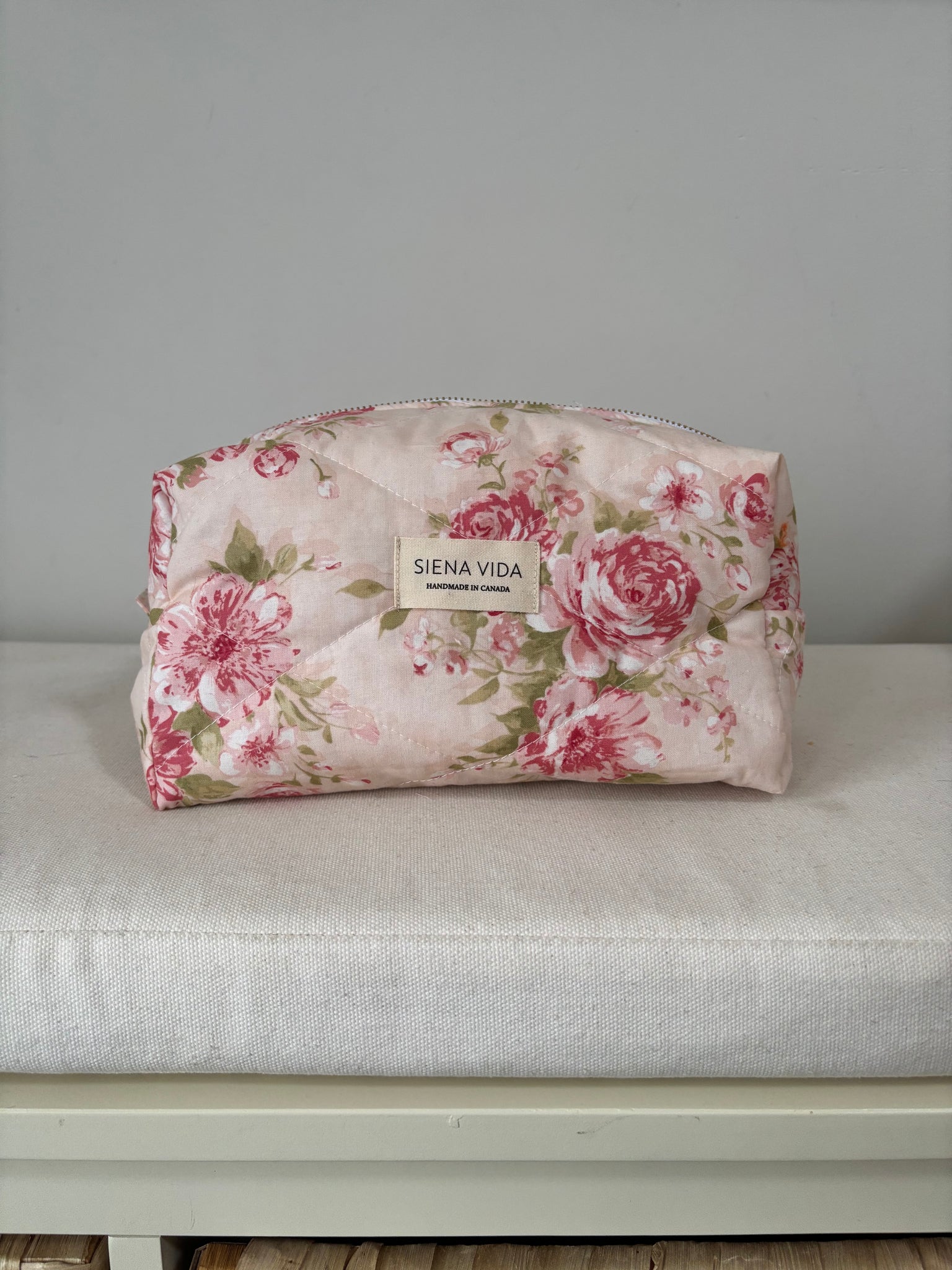 Our Quilted Pouch in Blush Rose is thoughtfully designed to keep your everyday essentials beautifully organized - whether it’s makeup, skincare, or travel must-haves.