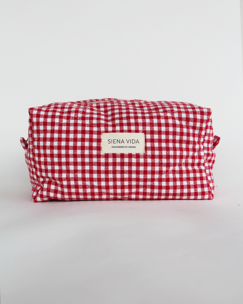 Red Gingham Quilted Pouch - Large