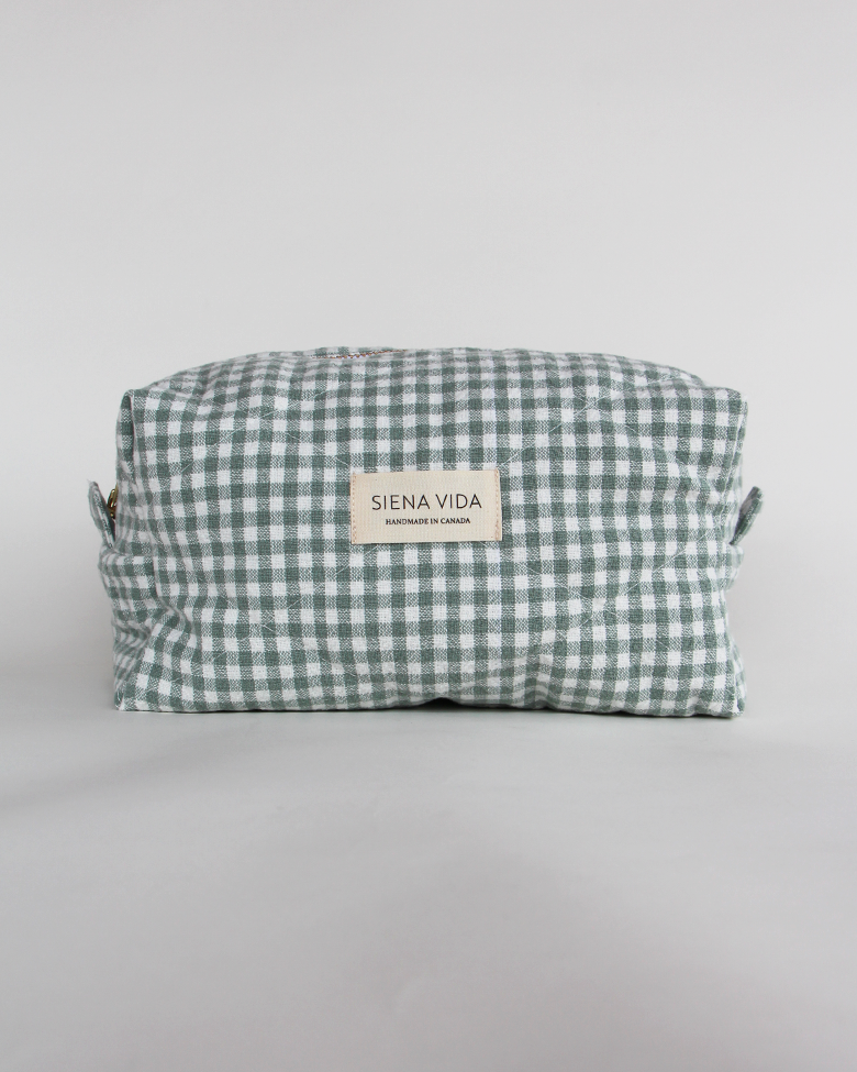 Sage Gingham Quilted Pouch - Large