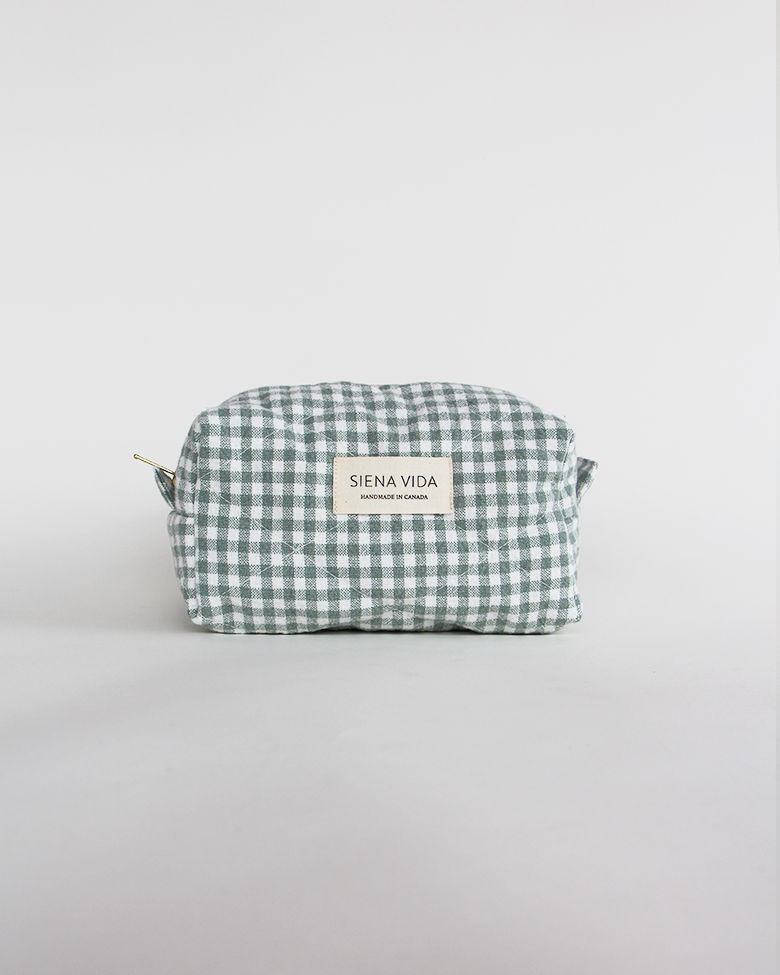 Sage Gingham Quilted Pouch - Small